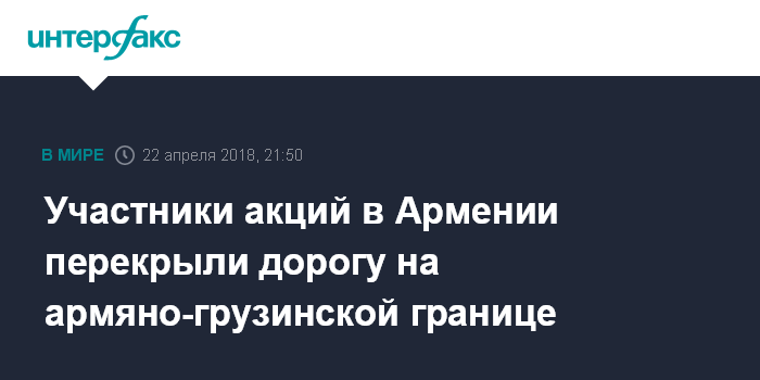 Москва. 22 апреля. INTERFAX.RU - Часть участников акций, которые уже несколько дней продолжаются в Армении, в воскресенье вечером перекрыла дорогу к армяно-грузинской границе в селе Баграташен, сообщают грузинские СМИ.