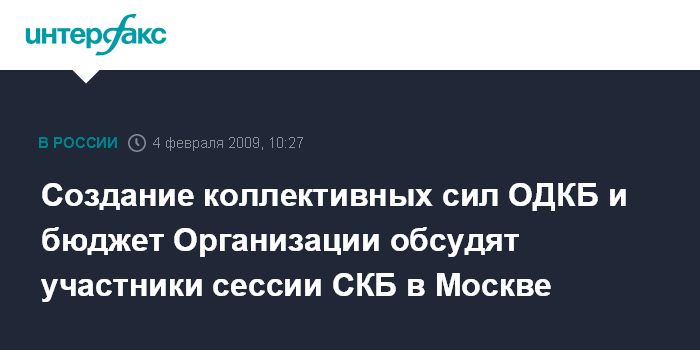 Москва. 4 февраля. INTERFAX.RU - Вопросы создания коллективных сил оперативного реагирования будут обсуждены на внеочередной сессии Совета коллективной безопасности (СКБ) Организации Договора о коллективной безопасности (ОДКБ), которая пройдет в Москве в среду.