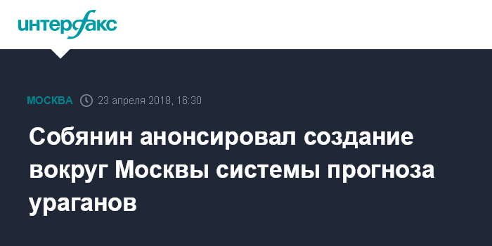 Москва. 23 апреля. INTERFAX.RU - Мощная система прогнозирования и оповещения о природных стихиях будет создана в Москве, заявил столичный мэр Сергей Собянин в интервью "Российской газете", опубликованном в понедельник.