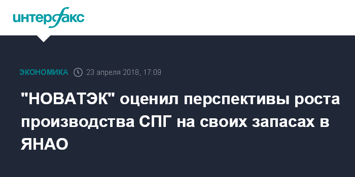 "НОВАТЭК" оценил перспективы роста производства СПГ на своих запасах в ЯНАО