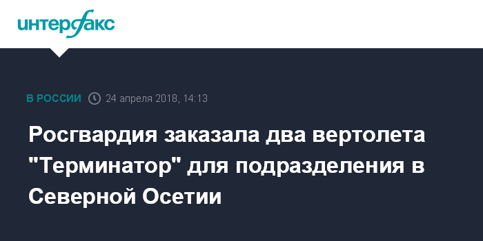 Росгвардия заказала два вертолета "Терминатор" для подразделения в Северной Осетии