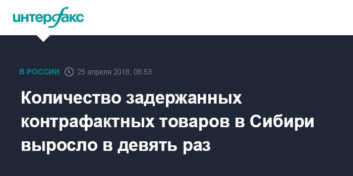 Москва. 25 апреля. INTERFAX.RU - Таможни Сибири в январе - марте текущего года выявили 916 тыс. 911 единиц контрафактной продукции, что в девять раз больше, чем в I квартале 2017 года (101 тыс. 746 единиц контрафактной продукции), сообщает в среду пресс-служба Сибирского таможенного управления (СТУ).