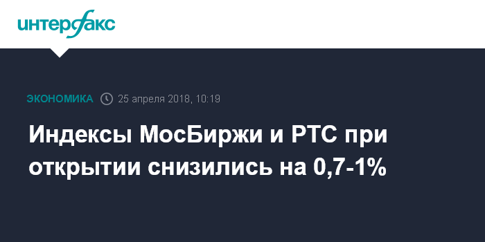 Индексы МосБиржи и РТС при открытии снизились на 0,7-1%