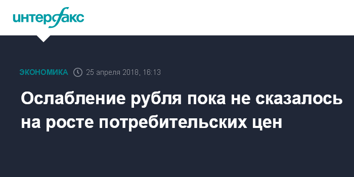 Таким образом, ослабление рубля пока не привело к видимому ускорению роста цен. В ЦБ ранее заявляли, что волатильность на российском валютном рынке, наблюдавшаяся в начале апреля, может начать действовать на инфляцию в мае.
