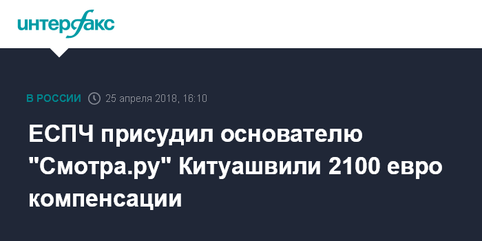 ЕСПЧ присудил основателю "Смотра.ру" Китуашвили 2100 евро компенсации