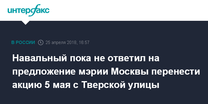 Навальный пока не ответил на предложение мэрии Москвы перенести акцию 5 мая с Тверской улицы