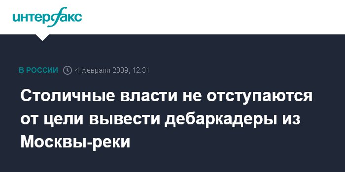 Москва. 4 февраля. INTERFAX.RU - Столичные власти намерены использовать все возможности, чтобы убрать дебаркадеры с Москвы-реки.