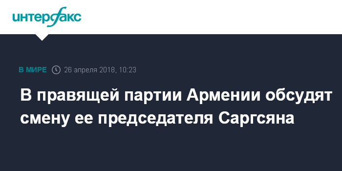 Москва. 26 апреля. INTERFAX.RU - Парламентская фракция правящей Республиканской партии Армении (РПА) провела заседание с участием руководителя этой политической силы - экс-премьера Сержа Саргсяна, а также исполняющего обязанности главы правительства Карена Карапетяна, на которой было решено начать обсуждения в руководящих органах по вопросу смены председателя партии.
