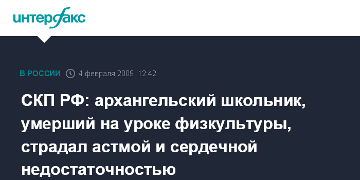 СКП РФ: архангельский школьник, умерший на уроке физкультуры, страдал астмой и сердечной недостаточностью