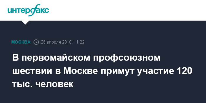 В первомайском профсоюзном шествии в Москве примут участие 120 тыс. человек