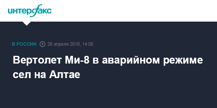 Москва. 26 апреля. INTERFAX.RU - Вертолет Ми-8 авиакомпании "Алтайавиа" совершил аварийную посадку в Алтайском крае в четверг, сообщил агентству "Интерфакс" источник в экстренных службах региона.