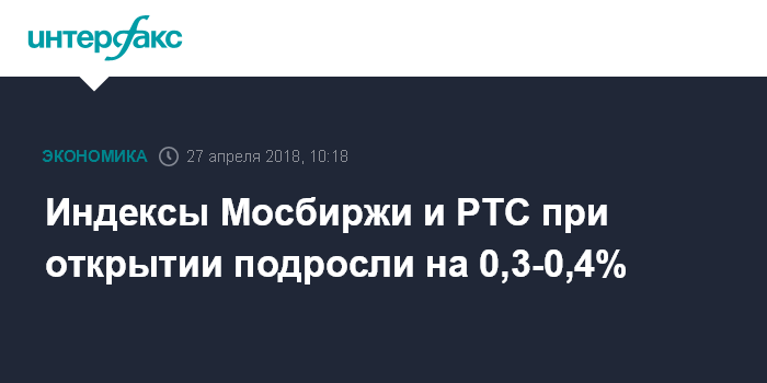 Индексы Мосбиржи и РТС при открытии подросли на 0,3-0,4%
