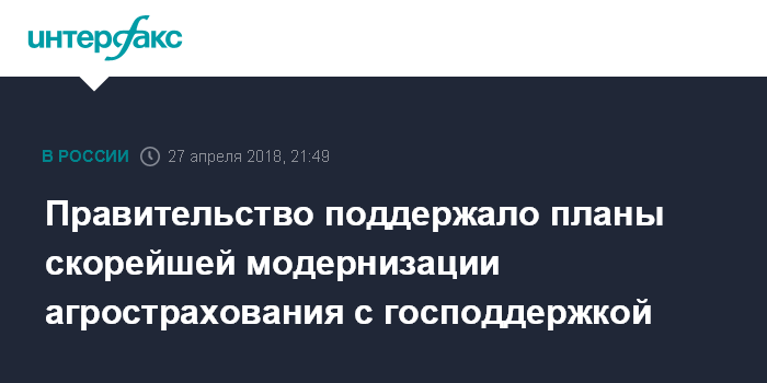 Правительство одобрило планы внесения в Госдуму законопроекта с изменениями в сфере агрострахования с господдержкой на заседании в четверг, а в пятницу эта тема впервые была включена в повестку прошедшего в Санкт-Петербурге Совета законодателей. Тему агрострахования на совете подняли председатель Совета Федерации Валентина Матвиенко и глава комитета СФ по аграрно-продовольственной политике и природопользованию Михаил Щетинин.