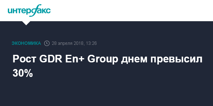 Москва. 28 апреля. INTERFAX.RU - Рост GDR En+ Group днем в субботу превысил 30% на новостях, что основной владелец En+ Олег Дерипаска согласился сократить долю участия в компании ниже 50% (сейчас 66%).