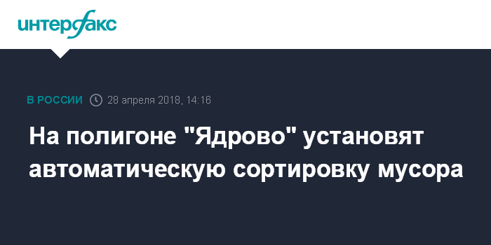 Москва. 28 апреля. INTERFAX.RU - На втором, новом, участке мусорного полигона "Ядрово" в Волоколамском районе Подмосковья будет установлена сортировочная и перерабатывающая станции, сообщил зампред правительства Московской области Александр Чупраков.