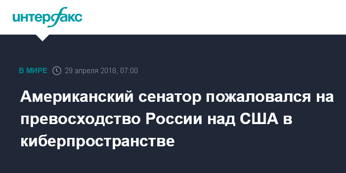 Москва. 29 апреля. INTERFAX.RU - Заместитель председателя сенатского комитета по разведке демократ Марк Уорнер заявил, что его беспокоит то, что Россия превосходит Соединенные Штаты в области борьбы в киберпространстве.