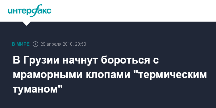 Москва. 29 апреля. INTERFAX.RU - Национальное агентство продовольствия министерства охраны окружающей среды и сельского хозяйства Грузии в рамках борьбы с мраморным клопом (азиатский щитник) с утра понедельника приступит к дезинфекционной обработке территорий в трех регионах на западе страны - Самегрело, Гурия и Имерети.