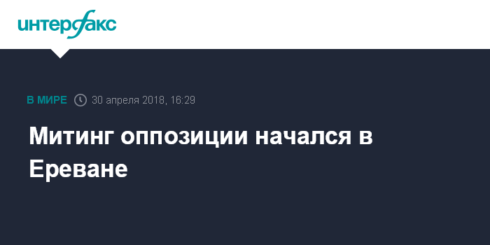 Москва. 30 апреля. INTERFAX.RU - Лидер протестного движения Армении, руководитель парламентской фракции "Елк" Никол Пашинян после встреч с представителями парламентских фракций отправился на созванный им митинг оппозиции.