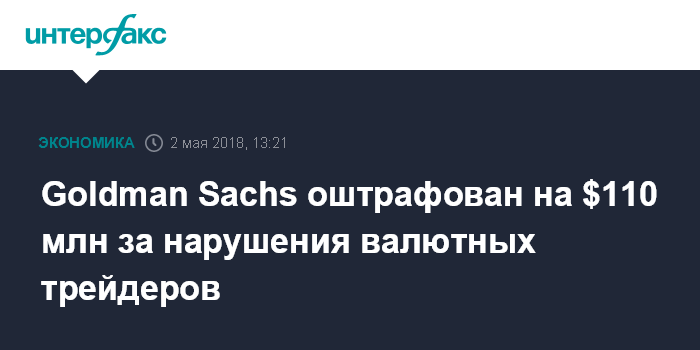 Goldman Sachs оштрафован на $110 млн за нарушения валютных трейдеров