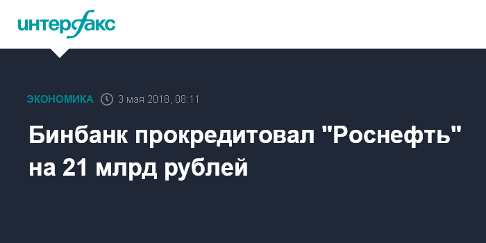 Бинбанк прокредитовал "Роснефть" на 21 млрд рублей