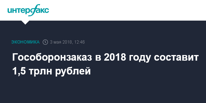 Гособоронзаказ в 2018 году составит 1,5 трлн рублей