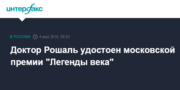 Доктор Рошаль удостоен московской премии "Легенды века"