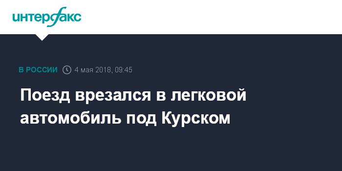 Москва. 4 мая. INTERFAX.RU - Легковой автомобиль столкнулся с тепловозом на железнодорожном переезде в Курской области, четыре человека госпитализированы, сообщили в пресс-службе управления МВД по региону.