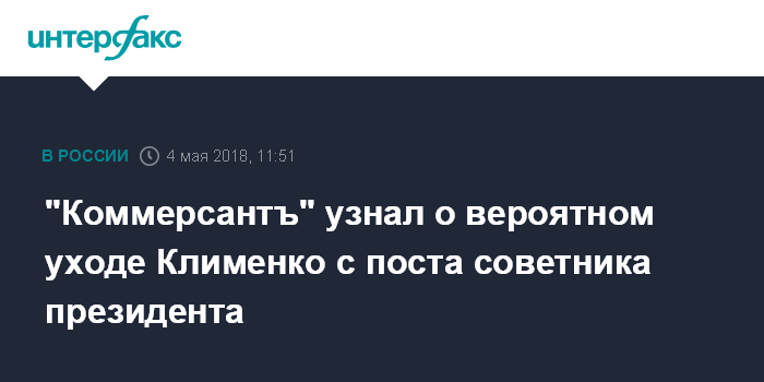 "Коммерсантъ" узнал о вероятном уходе Клименко с поста советника президента