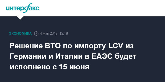 Решение ВТО по импорту LCV из Германии и Италии в ЕАЭС будет исполнено с 15 июня