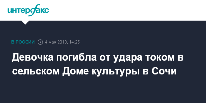Девочка погибла от удара током в сельском Доме культуры в Сочи