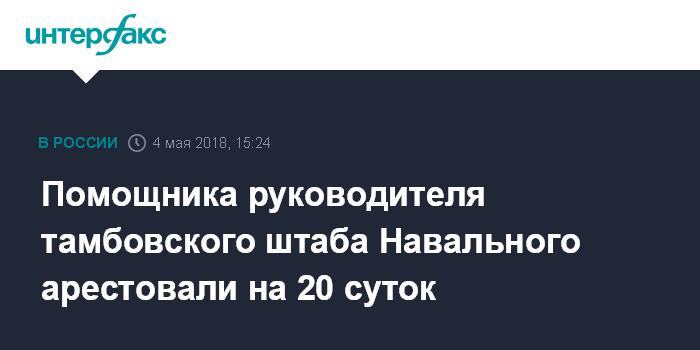 Москва. 4 мая. INTERFAX.RU - Ленинский районный суд в Тамбове в пятницу приговорил помощника координатора штаба Алексея Навального Игоря Сливина к 20 суткам административного ареста за организацию одиночных пикетов 7 октября 2017 года с помощью репостов в социальных сетях, сообщили "Интерфаксу" в штабе.