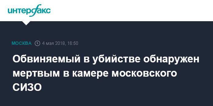 Обвиняемый в убийстве обнаружен мертвым в камере московского СИЗО