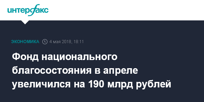 Фонд национального благосостояния в апреле увеличился на 190 млрд рублей
