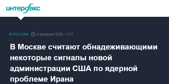 В Москве считают обнадеживающими некоторые сигналы новой администрации США по ядерной проблеме Ирана