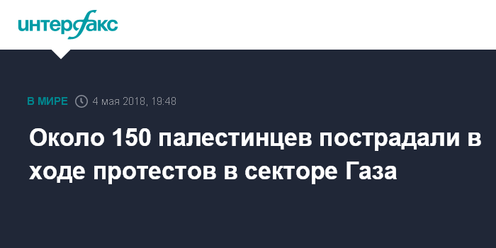Москва. 4 мая. INTERFAX.RU - В результате столкновений между военнослужащими армии обороны Израиля и палестинскими демонстрантами на границе сектора Газа в пятницу ранения получили 148 палестинцев, сообщает газета The Times of Israel.