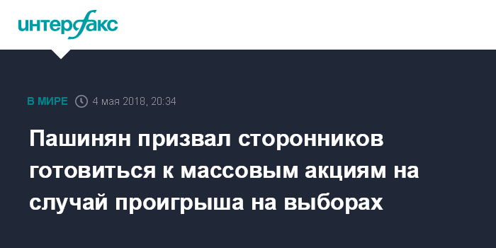 Пашинян призвал сторонников готовиться к массовым акциям на случай проигрыша на выборах