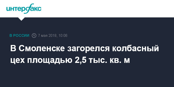 Москва. 7 мая. INTERFAX.RU - В Смоленске тушат вспыхнувший в колбасном цеху пожар, сообщили "Интерфаксу" в оперативном штабе на месте ЧС.