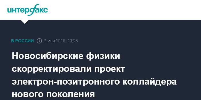 Москва. 7 мая. INTERFAX.RU - Ученые Института ядерной физики имени Будкера (ИЯФ, Новосибирск) внесли изменения в проект электрон-позитронного коллайдера нового поколения - "Супер чарм-тау фабрики", сообщает издание Сибирского отделения РАН "Наука в Сибири".