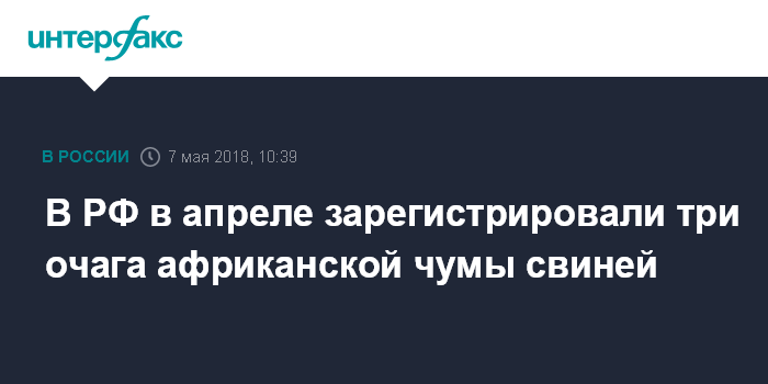 Москва. 7 мая. INTERFAX.RU - В России в апреле было зарегистрировано три очага африканской чумы свиней (АЧС).