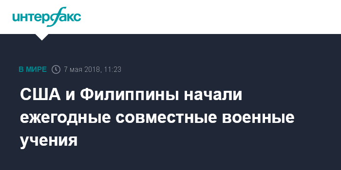 Как отмечают филиппинские СМИ, учения продлятся до 18 мая. В них примут участие 5 тыс. филиппинских военных и 3 тыс. американских.