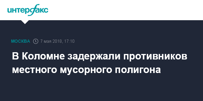 Москва. 7 мая. INTERFAX.RU - Около десятка жителей Коломны, выступающих против мусорного полигона "Воловичи", задержаны у поселения Первомайское. Об этом сообщил "Интерфаксу" представитель активистов Вячеслав Егоров.