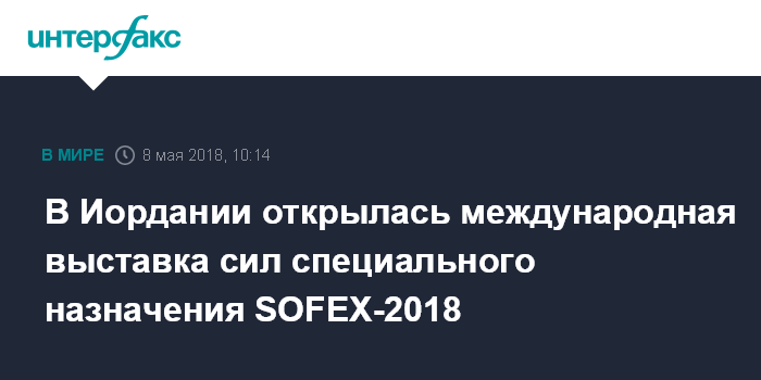 Москва. 8 мая. INTERFAX.RU - Международная выставка сил специального назначения SOFEX-2018 открылась во вторник в столице Иордании.