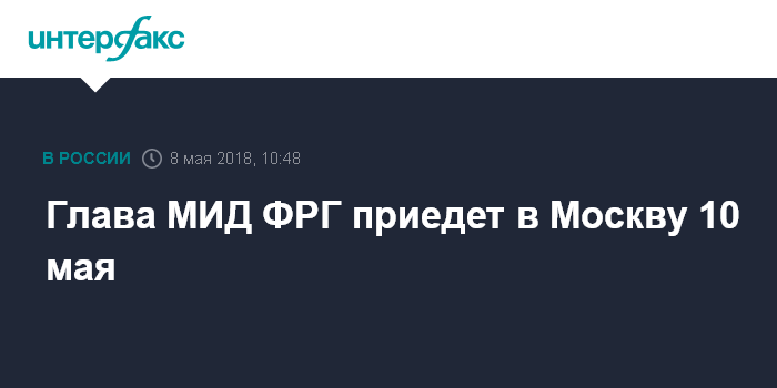 Москва. 8 мая. INTERFAX.RU - Министры иностранных дел России и Германии Сергей Лавров и Хайко Маас проведут переговоры 10 мая в Москве, сообщил "Интерфаксу" во вторник источник в МИД РФ.