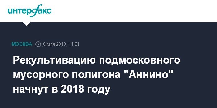 Москва. 8 мая. INTERFAX.RU - Закрытый полигон твердых бытовых отходов "Аннино" в Рузском округе Московской области вошел в областную программу рекультивации, работы начнутся в этом году, сообщил глава округа Максим Тарханов.