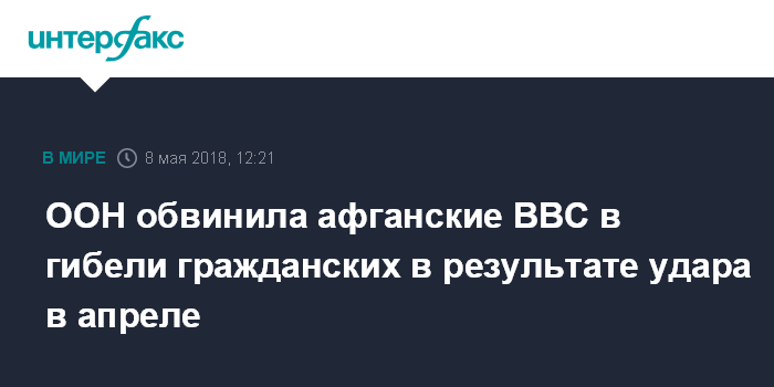 Москва. 8 мая. INTERFAX.RU - Миссия ООН по содействию Афганистану (UNAMA) обнародовала доклад по итогам расследования воздушных ударов 2 апреля 2018 года в провинции Кундуз, на северо-востоке Афганистана, сообщается на сайте организации.