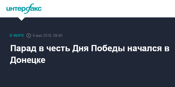 Москва. 9 мая. INTERFAX.RU - Парад Победы при участии военной техники проходит в центре Донецка, передает корреспондент "Интерфакса" с места событий.