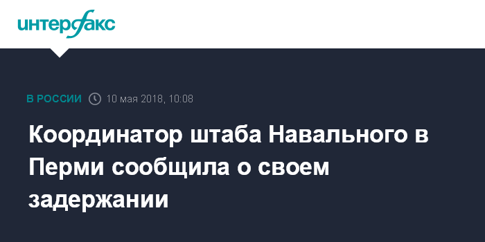 Москва. 10 мая. INTERFAX.RU - Сотрудники полиции в четверг утром задержали координатора пермского штаба оппозиционера Алексея Навального Наталью Вавилову. Об этом она сообщила в фейсбуке.