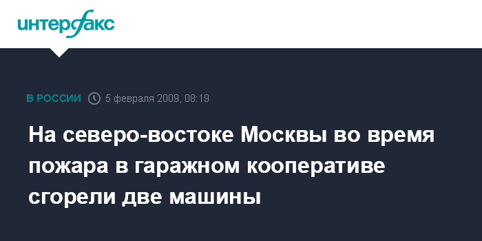 Москва. 5 февраля. INTERFAX.RU - Пожар произошел на территории одного из гаражных кооперативов на северо-востоке столицы, сообщил "Интерфаксу" начальник пресс-службы ГУ МЧС по Москве Евгений Бобылев. "В результате пожара, площадь которого составила 150 кв.м., пострадали две машины", - рассказал Е.Бобылев. Он добавил, что в 6:27 мск пожар был ликвидирован, среди людей пострадавших нет.