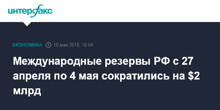 Международные резервы РФ с 27 апреля по 4 мая сократились на $2 млрд
