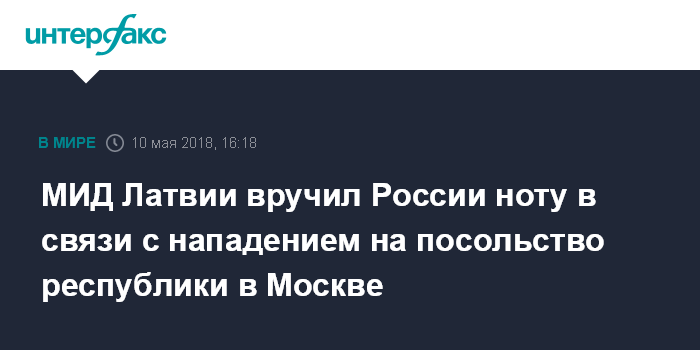 МИД Латвии вручил России ноту в связи с нападением на посольство республики в Москве